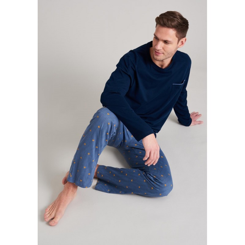 Schiesser pyjama met lange broek en nachtblauwe top.