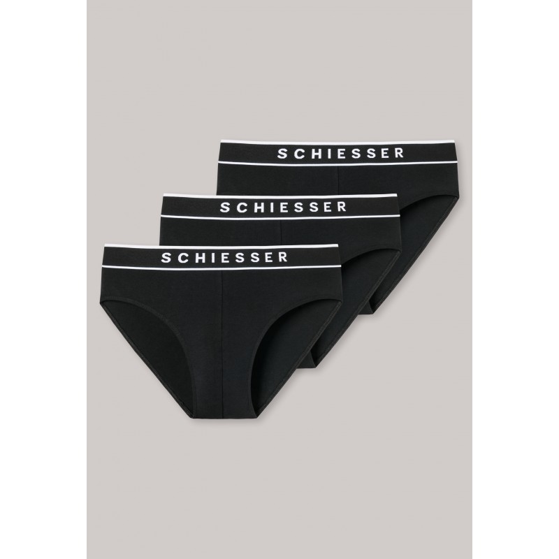 Sportief chic in een aantrekkelijk geprijsd 3-pack! Deze modieuze herenslips in blauw en zwart uit de populaire "95/5" -serie staan voor eersteklas draagcomfort. Met hun ton-sur-ton geweven elastische tailleband met logo zit de slip altijd perfect om het lichaam. Het elastische single jersey-materiaal van 95% natuurlijk biologisch katoen en 5% elastaan voelt bijzonder aangenaam aan op de huid. Comfortabel allround ondergoed voor iedereen die vertrouwt op de bekende, beste SCHIESSER-kwaliteit!